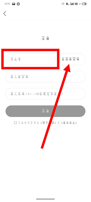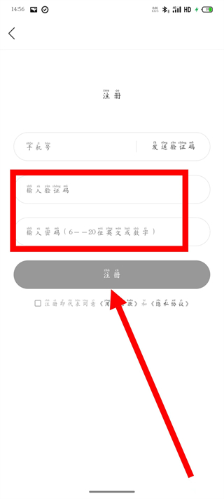 5、输入设置密码,勾选同意协议后,点击注册,完成账号注册操作。