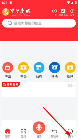 1、在甲子商城首页,点击底部我的,进入个人页面。