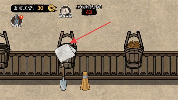 3、拖动工具进行工作,清理马桶上的污渍,工资将根据清理程度和数量决定。