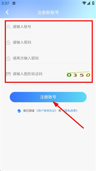 3、输入账号、密码、图形验证码后,点击注册账号完成注册。