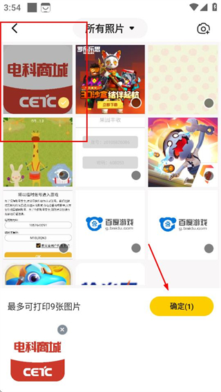 2、在照片选择页面,选择要打印的照片后点击确定按钮,进入打印页面。