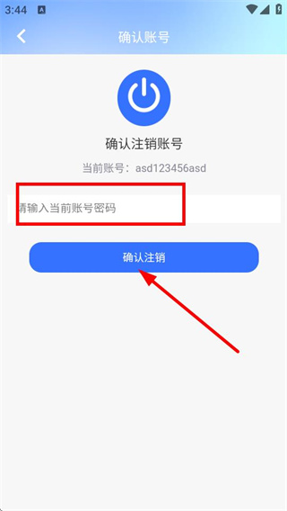 5、输入当前账号密码后,点击确认注销完成账号注销操作。