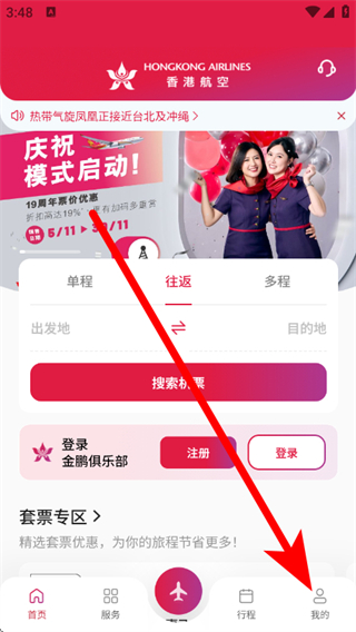 1、打开香港航空,点击底部我的,进入个人中心页面。