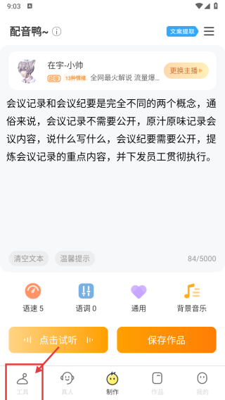 1、打开配音类APP,点击底部工具选项,进入工具功能页面。