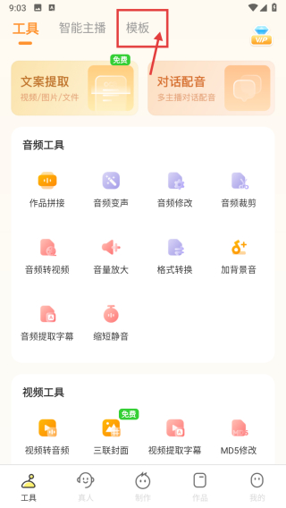 2、在工具功能页面,点击模板选项,进入模板推荐界面。