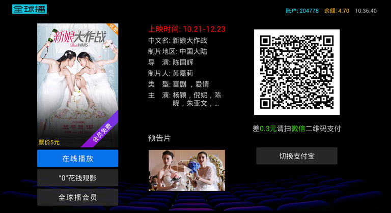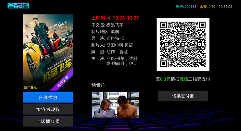 通过将电影院线搬到电视屏幕上,开辟了电影通向电视的创新通道,让全球播用户真正享受足不出户看院线大片的乐趣,动动手指看看广告就可以赚取零花钱免费换取礼品,家庭影院的极致体验其实就在你身边,来吧快加入我们吧!