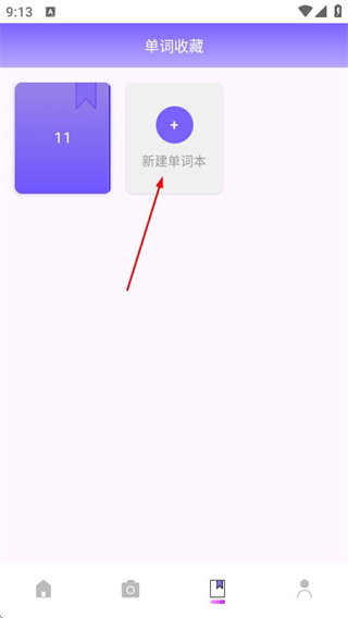 2、在单词收藏页面,点击新建单词本选项,弹出新建单词本弹窗。