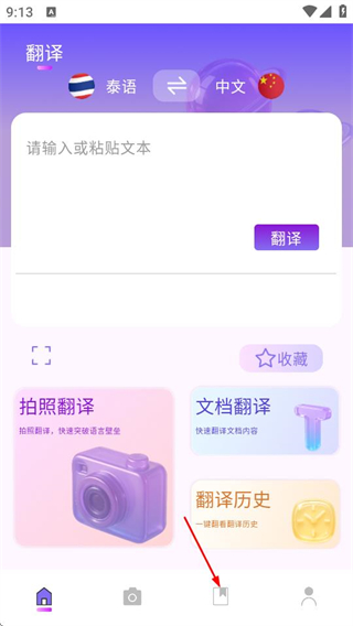 1、在泰国翻译官首页,点击底部中间的单词本图标,进入单词收藏页面。