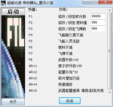 超越光速十三项修改器是游戏《超越光速》的一款多功能辅助工具,提供武器升级、子弹不减、快速维修、能量补充等十几项功能,帮助降低游戏难度,更轻松的进行游戏。赶快下载体验吧!