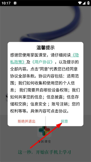 1、在温馨提示弹窗中,点击同意,进入登录页面。