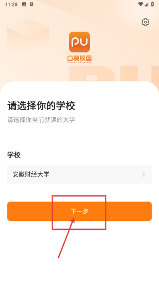 3、在学校选择页面,点击下一步按钮,进入登录方式选择页面。
