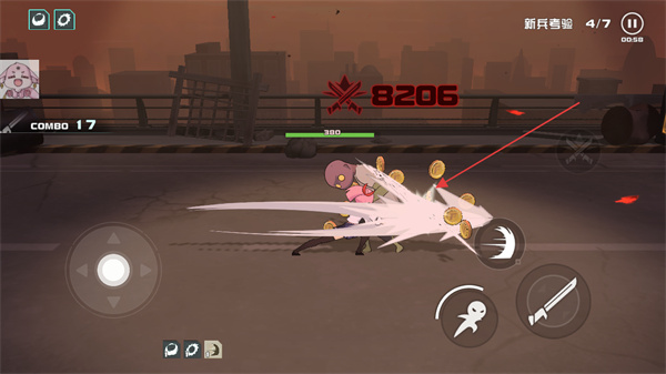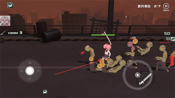 2、操控角色移动,点击攻击键攻击僵尸,积累连击数,收集金币。