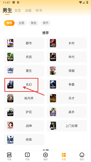 2、在分类页面,点击玄幻分类,进入玄幻小说列表页。