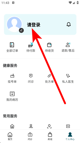 1、打开同仁堂国际,点击底部个人中心,进入个人中心页面。