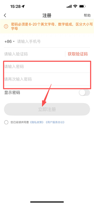 4、设置密码,再次输入密码,点击立即注册,完成注册操作。