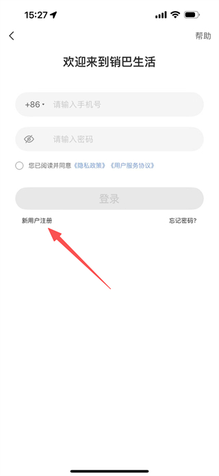 2、在登录页面,点击新用户注册,进入注册页面。