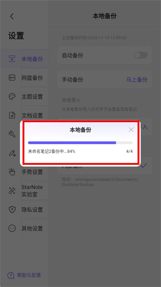 3、等待本地备份进度完成,即可完成笔记的本地备份操作。