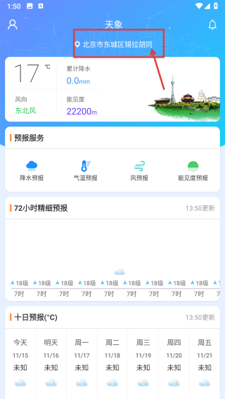 1、打开天气类APP,点击顶部地址区域,进入地址选择页面。