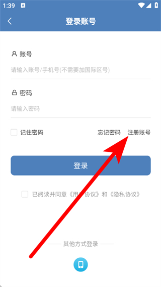 3、在登录账号页面,点击注册账号,进入注册页面。