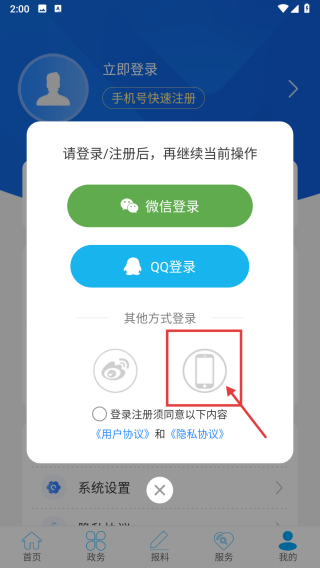 1、打开云上咸丰app,点击右下角底部的我的选项。