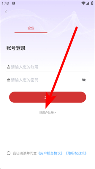 3、在登录界面,点击新用户注册,进入采购商注册流程。