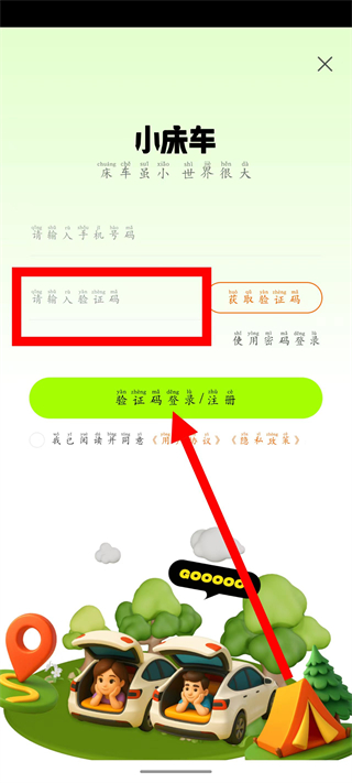 4、输入验证码,勾选我已阅读并同意后,点击验证码登录注册,完成账号注册登录。