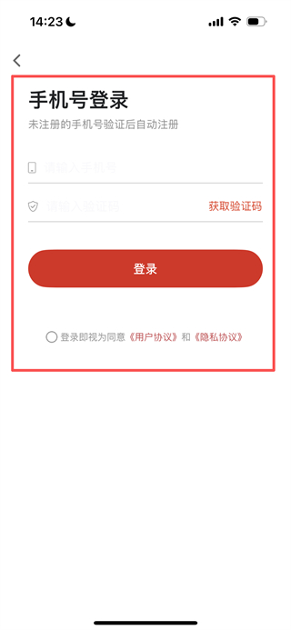 4、在手机号登录页面,输入信息,勾选协议后点击登录,完成账号登录。