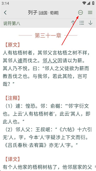 3、在书籍详情页面,点击右上角更多图标,弹出操作选项。