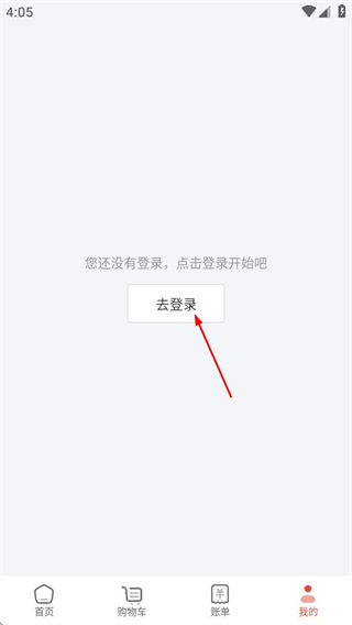 2、在个人页面,点击去登录选项,进入账号登录页面。