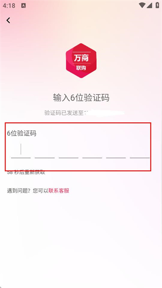 5、在验证码输入页面,输入6位验证码,完成账号注册操作。