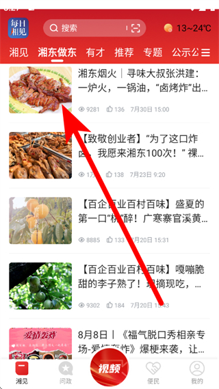 3、在湘东做东频道,点击选择感兴趣的资讯,进入详情页面。