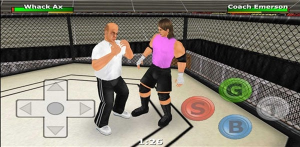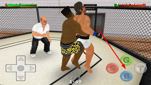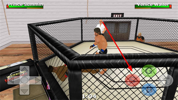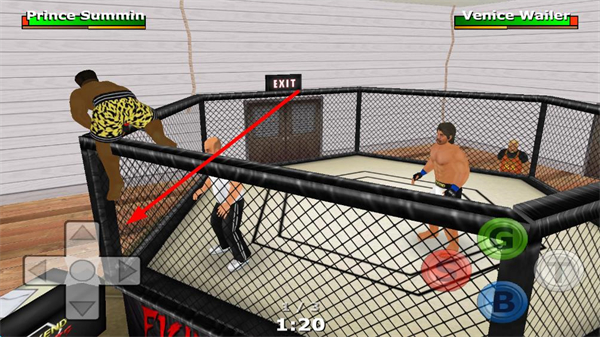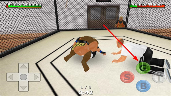 1、十字方向键控制摔跤手移动,可在铁笼内外自由行走,靠近对手、躲避攻击或利用铁笼边缘调整站位。
