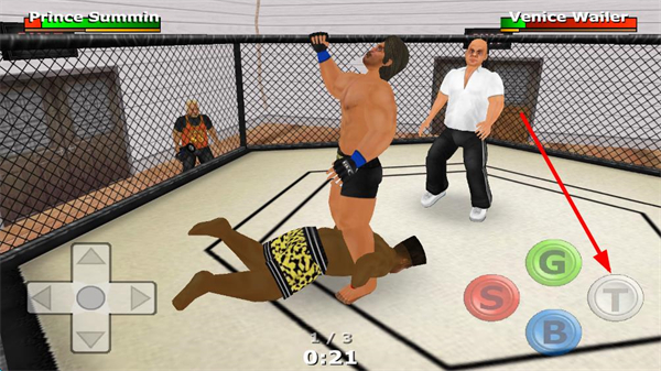4、灰色T键点击可发动特殊技,在对手倒地或处于特定状态时使用,能对其造成大量伤害,特殊技是逆转战局的关键。