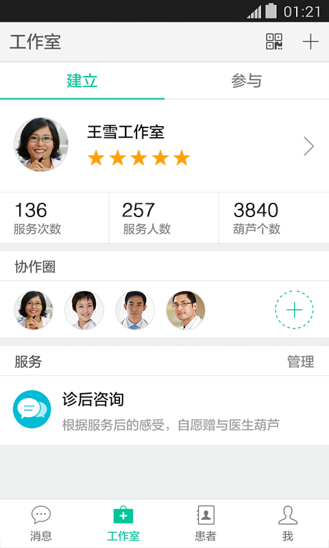 打造医生个人品牌,为医生创建属于自己的云端工作室,与患者搭建良好的沟通桥梁。