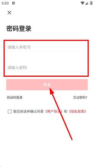 4、在密码登录界面,输入手机号与密码后点击登录,完成登录操作。