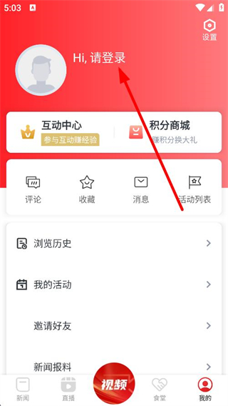 2、在我的页面,点击Hi,请登录,进入登录选择页面。