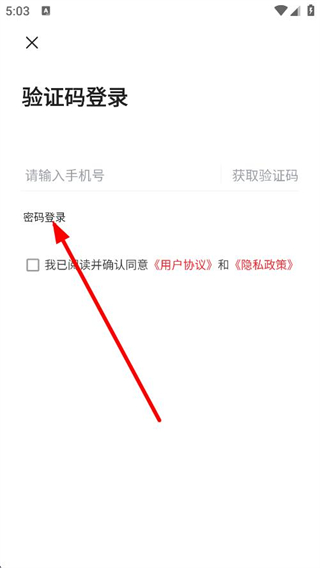 3、在登录页面,点击密码登录,切换到密码登录界面。