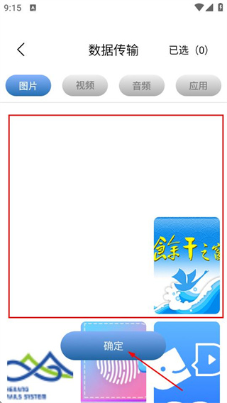 2、在数据传输页面选择要传输的照片,点击确定。