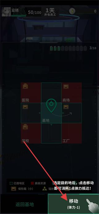 3、选择好后,点击移动按钮,消耗体力进行移动。