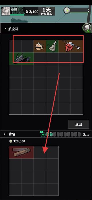 4、在箱子中,选择上方需要的物资拖动到背包里。