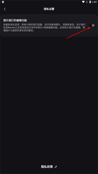 3、在隐私设置页面,开启提升我们的编辑功能,即可授权应用收集相关信息以优化编辑服务。