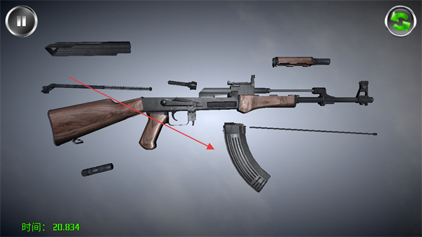 4、拆分枪身内部零件,完成所有部件拆解,通关计时模式。