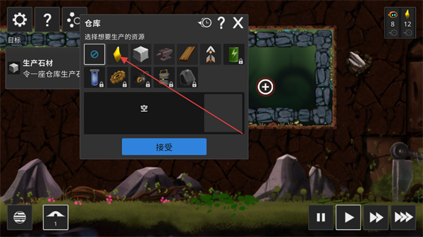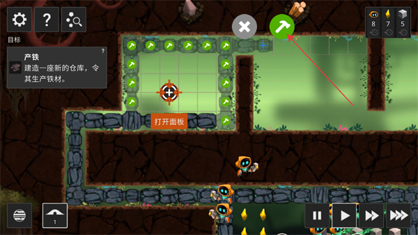 2、点击巢穴内的加号按键,可以选择一种资源让机器人们进行生产。