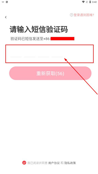 4、在短信验证码输入页面,输入收到的验证码,完成登录操作。
