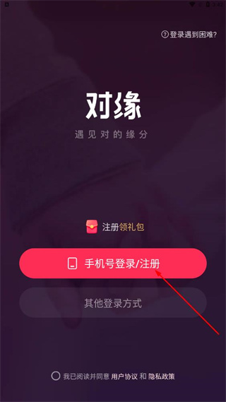 2、在登录页面,点击手机号登录/注册,进入手机号登录注册页面。