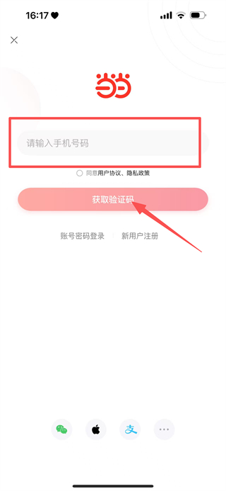 3、在登录页面,输入手机号码,点击获取验证码,进行下一步。