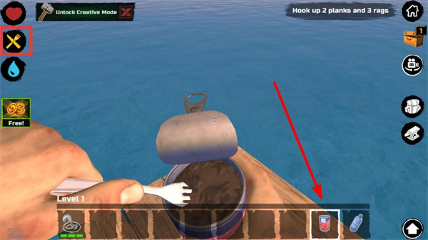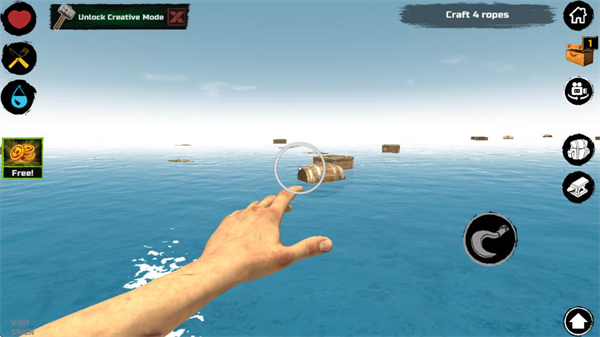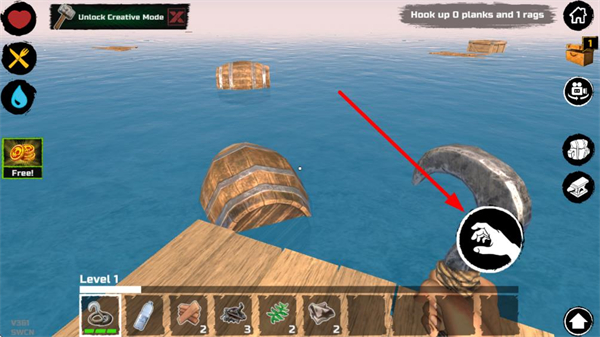 1、钩子按钮点击可发射钩子,瞄准海上的木桶、木板等资源发射,点击回收钩子按钮可将勾中的资源拉回木筏。