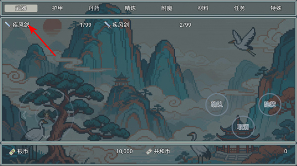 1、游戏中获取并装备疾风剑等武器,可提升角色攻击力,这是增强战力的关键操作,需关注武器的属性和获取途径。