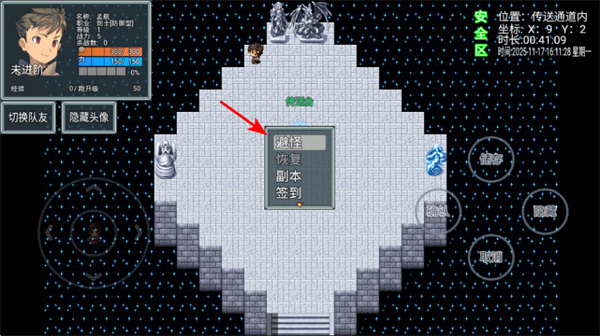 2、点击途径菜单,可选择恢复、副本等功能,这是保障角色状态和获取资源的核心操作,根据需求选择合适的功能。