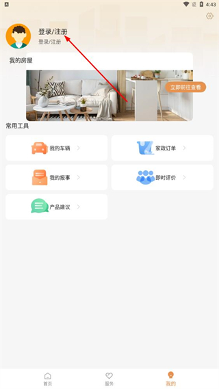 2、随后可在我的页面,点击登录/注册,弹出功能提示框。